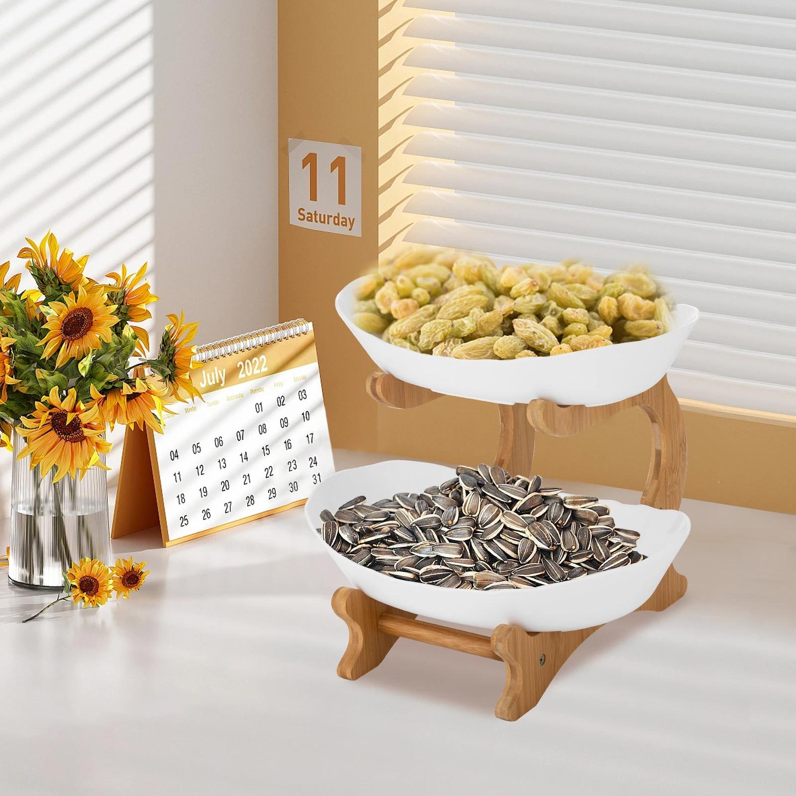 Eco-Friendly Bamboo Fruit Basket with Detachable Bowls