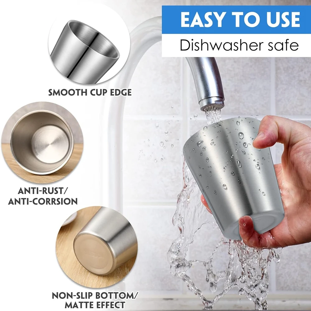✔DURABLE METAL CUPS: Our stackable cups are made of reinforced and corrosion resistant stainless steel.